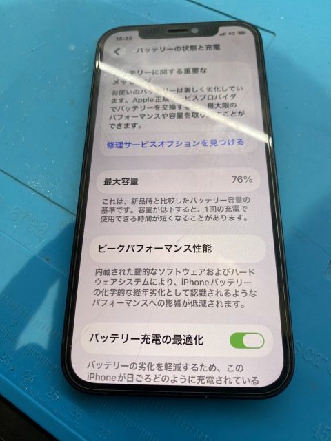 またバッテリー最大容量が76%となっており、サービス表記となっておりました。